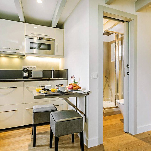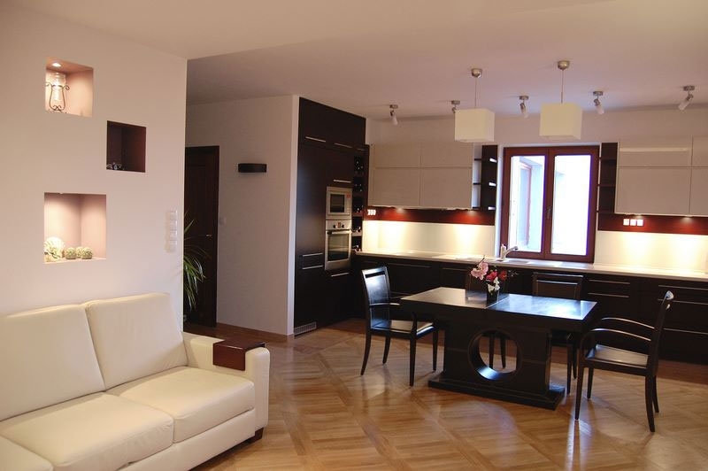 Что касается мебели, то она должна быть не слишком большой и нести в себе максимальную функциональную нагрузку. Она не должна занимать много места. В маленькой квартире должно находиться только то, что действительно нужно каждый день. Конечно же и мебель должна соответствовать тонам, который был выбран для создания собственного дизайна квартиры.