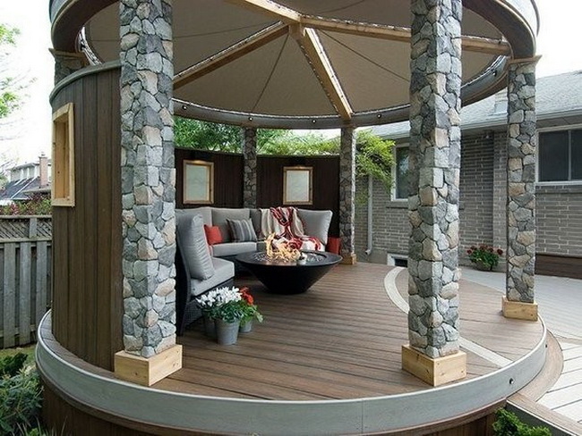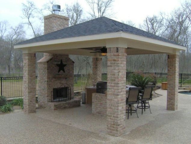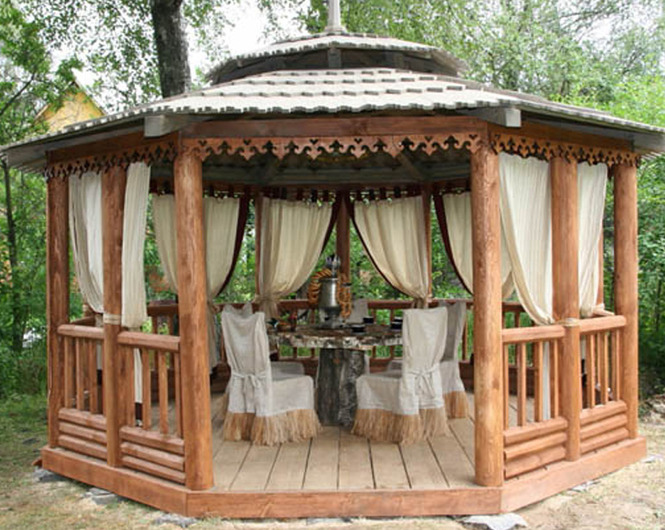 Так вот, каждый владелец загородного дома хотел бы иметь у себя уютную беседку, чтобы отдыхать самому, с семьей и друзьями. И конечно хочется чтобы беседка имела обустроенную площадку. Самым подходящим вариантом может стать встроенный мангал, где можно будет жарить шашлык, тушить рыбку или овощи. Мангал это незаменимая вещь в беседке. Лучше всего установить его на мини-фундамент. Кстати, также можете также оснастить зону для барбекю с навесом, или подставкой под дрова, а также совком, кочергой и прочим. Мангал устанавливайте недалеко от беседки, так вы сможете следить за процессом жарки.