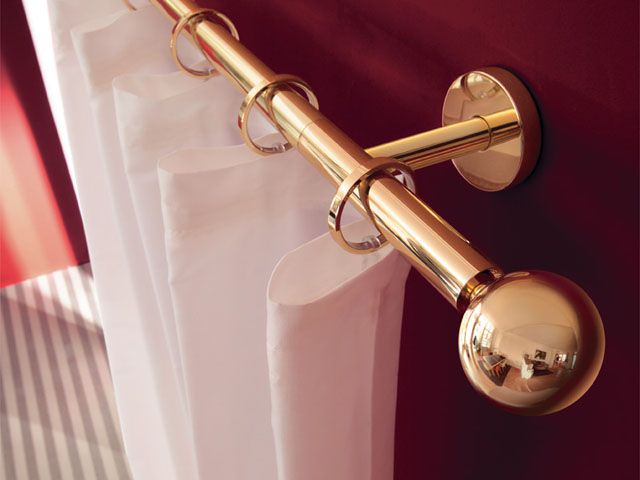 Круглые карнизы делают из дерева или полимеров. Диаметр трубы основной может достигать сорока миллиметров, а дополнительной до трёх миллиметров.